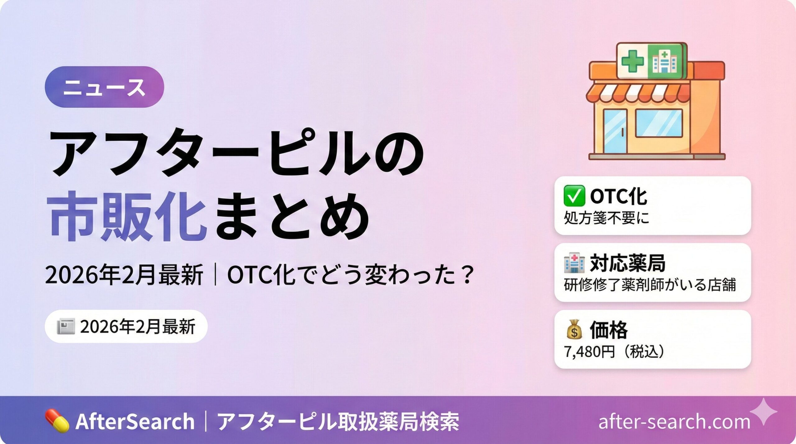 2026年2月2日、日本で初めてアフターピル(緊急避妊薬)がOTC医薬品として薬局での販売を開始しました。