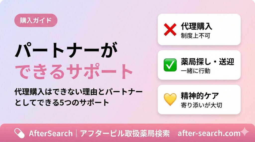 アフターピルは男性やパートナーが代わりに購入できるのか?2026年のOTC化後のルールと、パートナーができるサポートを解説します。